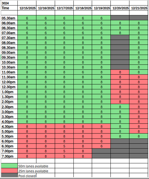 Our Pools are used by various groups in the community throughout the summer. Please check for lane availabilty, below. Please keep in mind we keep the lane availability as up to date as possible, however last minute bookings may occur and lanes may be subject to change.
