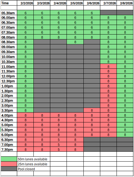 Lap Lane Availability